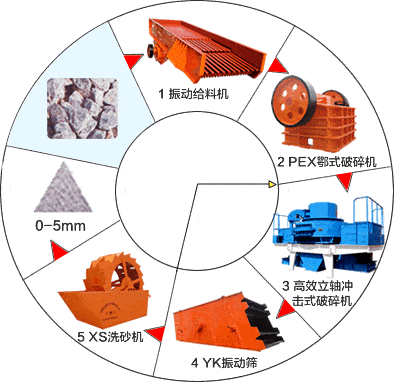 紅星制砂生產(chǎn)線由振動(dòng)給料機(jī)、顎式破碎機(jī)、第三代制砂機(jī)(細(xì)碎機(jī))、洗砂機(jī)、振動(dòng)篩和膠帶傳輸機(jī)等設(shè)備組合而成。根據(jù)不同的工藝要求,各種型號(hào)的設(shè)備進(jìn)行組合,滿足客戶的不同工藝要求。